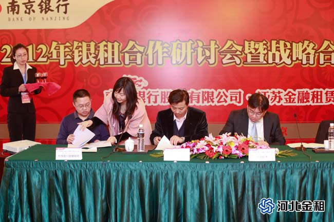 此次會(huì)議,我公司與南京銀行在綜合授信、資金融資、應(yīng)收租賃款回購(gòu)、聯(lián)合融資、理財(cái)資產(chǎn)推薦、客戶推薦、投行業(yè)務(wù)等方面達(dá)成了合作共識(shí),為致力于建立長(zhǎng)期、穩(wěn)定、互利、共贏的全面戰(zhàn)略合作伙伴關(guān)系,不斷提升雙方的合作深度與廣度,公司總裁徐敏俊與南京銀行副行長(zhǎng)禹志強(qiáng)在簽字儀式上簽署了《戰(zhàn)略合作協(xié)議》。