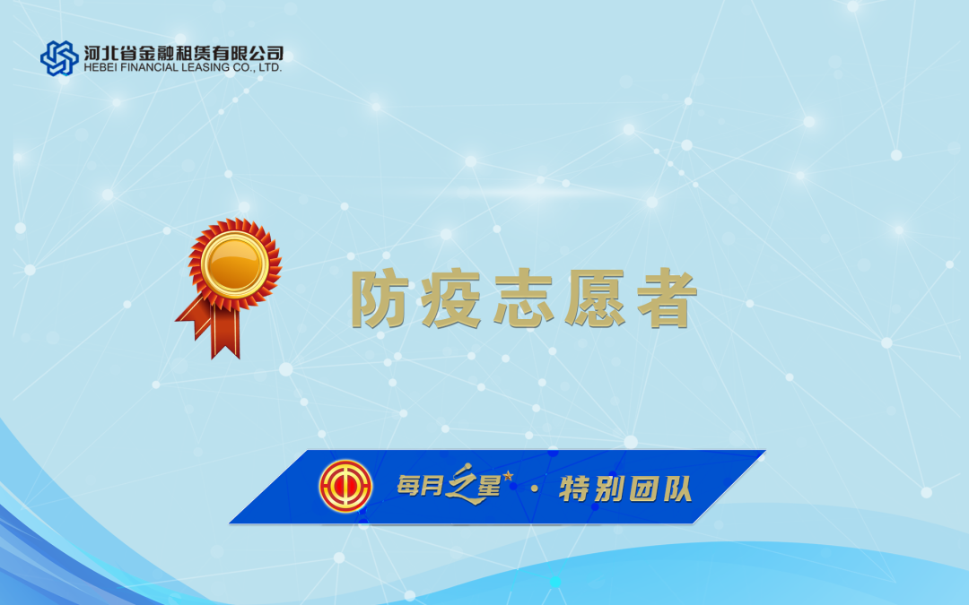 江瀚、杜倩、高全友、熊偉光、謝斌、田靖卿、康田、尚晨光、陳長亮 岳思雨、宋志龍等志愿者組成防疫期間的公司特別團隊,他們無聲鏗鏘、匯聚微光,為石家莊抗擊疫情貢獻出滿滿的正能量,守護了城市安全和群眾健康,彰顯河北金租人的責(zé)任和擔(dān)當(dāng)。