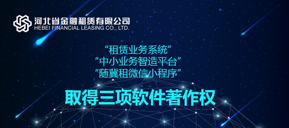 近日,由河北省金融租賃有限公司(以下簡稱“河北金租”)研發的“中小業務智造平臺”、“租賃業務系統”、“隨冀租微信小程序”三件軟件成果正式通過國家版權局審核,獲得計算機軟件著作權,此舉進一步完善了河北金租知識產權保護體系,也標志著公司科技創新工作邁上新臺階。