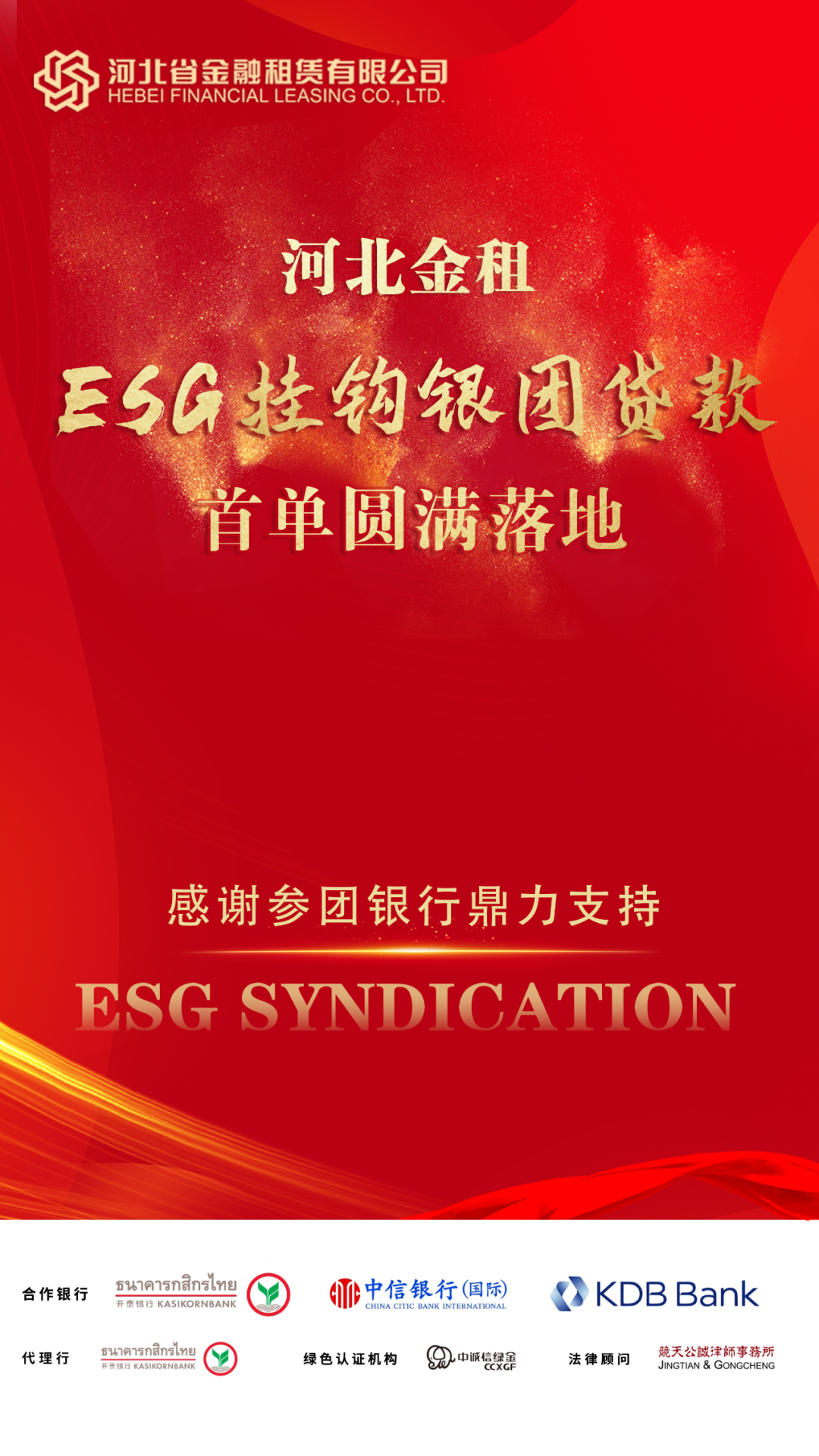 近期,河北省金融租賃有限公司(以下簡稱“河北金租”)成功募集首筆可持續(xù)發(fā)展(ESG)掛鉤銀團(tuán)貸款,這是金租行業(yè)開展的首單境內(nèi)ESG掛鉤銀團(tuán)貸款業(yè)務(wù),也是河北金租貫徹監(jiān)管政策要求,履行企業(yè)社會責(zé)任,積極探索綠色租賃業(yè)務(wù)的又一重要舉措。
